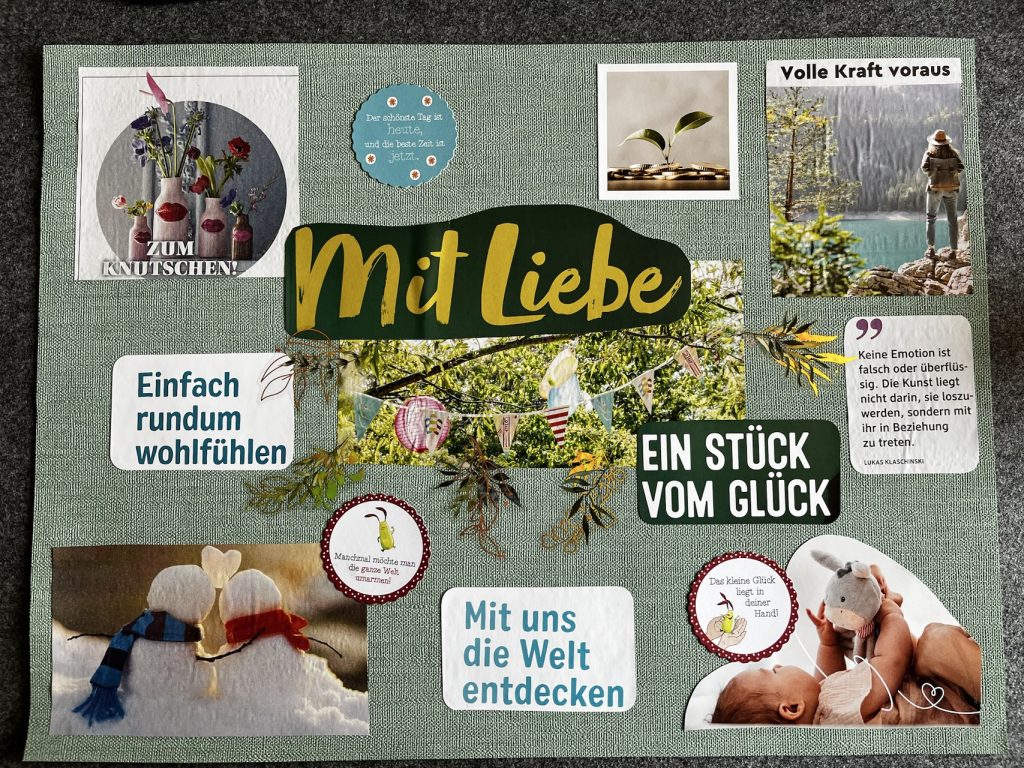Ich habe 2024 zum ersten Mal ein Visionboard erstellt und habe mir dafür ein Vision Board Kit im Internet bestellt. 2025 haben mir die Raunächte geholfen, eine Vision für das neue Jahr zu erarbeiten und dieses Jahr hatte ich schon sehr intuitiv ein Bild vor Augen, was im Fokus stehen wird. 😉