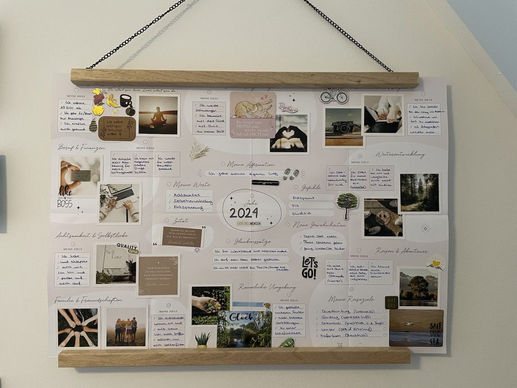 6. Häng dir dein Visionboard an einem Ort auf, an dem du es immer wieder im Blick hast. So motiviert es dich und erinnert dich über das Jahr an deine Ziele, Träume und Wünsche.